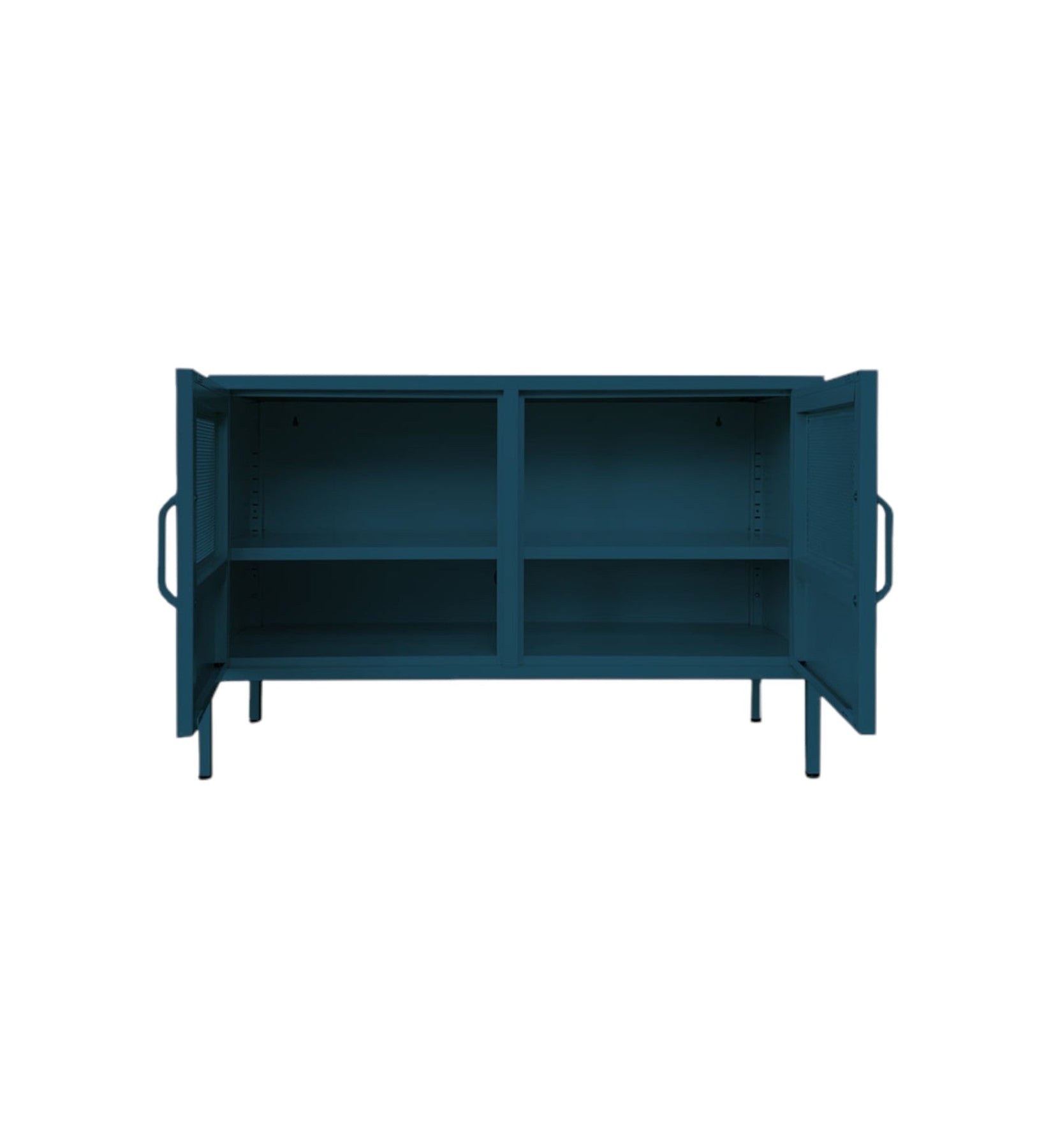 - Mesh doors display your belongings while keeping them neatly tucked away.